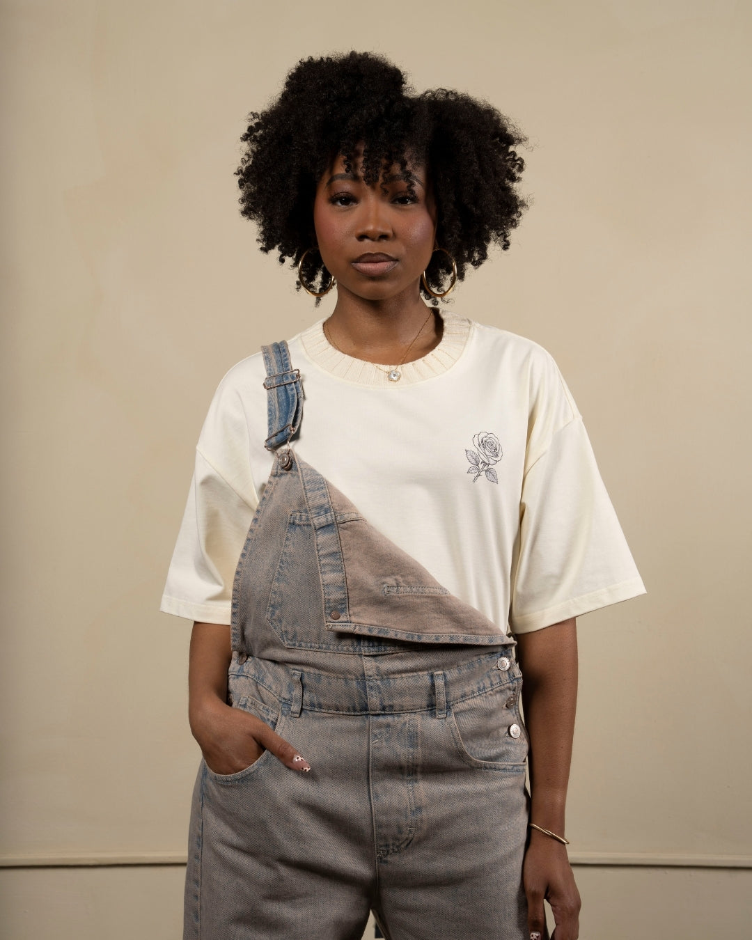Crafted from 280GSM heavyweight cotton with clean, structured half sleeves. Built for durability and offers a relaxed boxy fit with a raw-edge hem that holds its shape wear after wear.